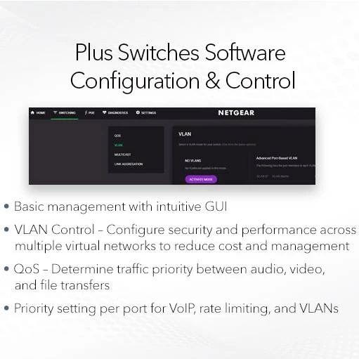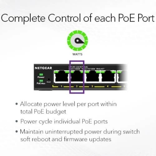 NETGEAR GS305EP — это управляемый гигабитный коммутатор класса Easy Smart с поддержкой PoE+, предназначенный для малого и среднего бизнеса, офисов, торговых точек и систем видеонаблюдения. Устройство сочетает в себе простоту Plug-and-Play, расширенные функции управления сетью и поддержку питания PoE+ по одному Ethernet-кабелю.