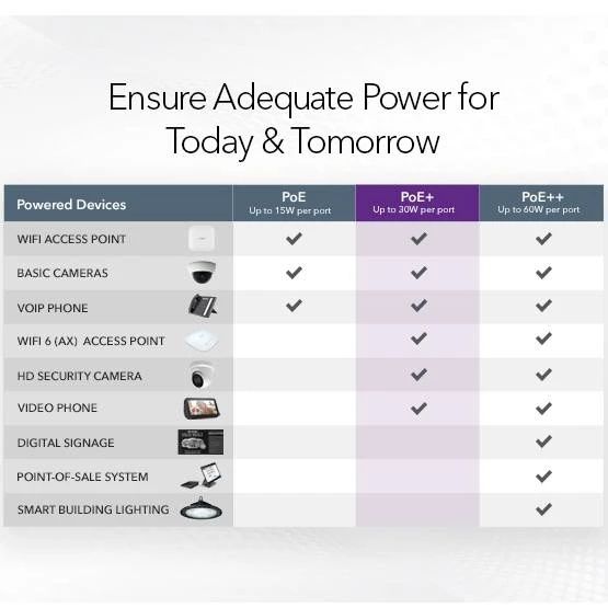 Поддержка PoE+ с бюджетом 63 Вт