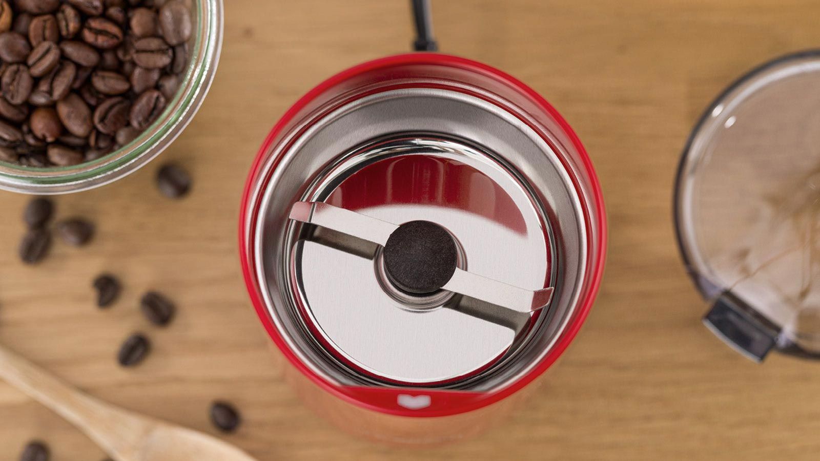 - Нож из нержавеющей стали, расположенный под углом, одновременно измельчает и перемешивает зерна, обеспечивая однородную текстуру помола и максимальное раскрытие аромата кофе.