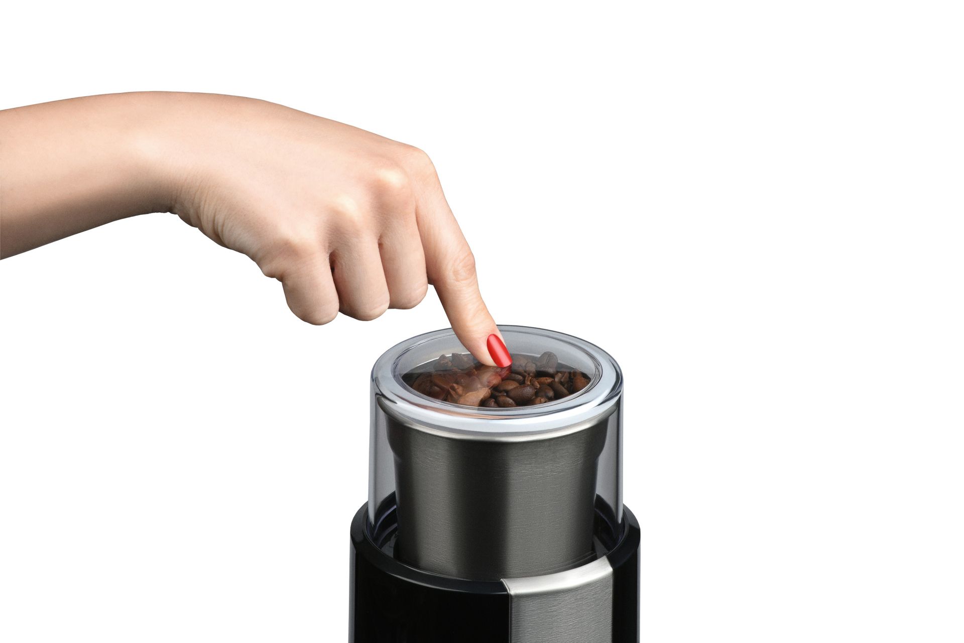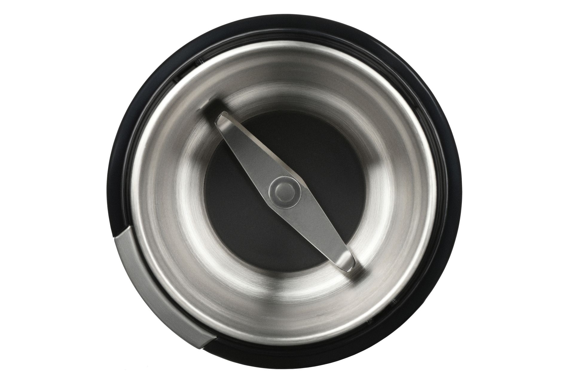 Модель оснащена удлиненными лезвиями из нержавеющей стали SS 304, которые гарантируют качественный и однородный помол. Съемный контейнер объемом 60 г облегчает высыпание готового продукта и упрощает очистку прибора после использования.