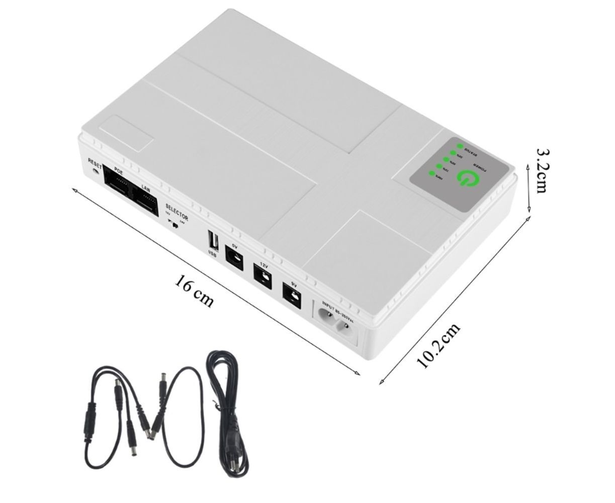 - Этот ИБП поддерживает различные разъемы: USB (5V), DC (5V, 9V, 12V) и POE (15V/24V), что делает его универсальным и совместимым с большинством устройств, требующих постоянного питания.
