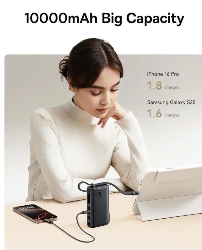Baseus Nomos NT11 — это универсальное решение формата 3-в-1, объединяющее функции внешнего аккумулятора и сетевого зарядного устройства. Модель разработана для пользователей, которым необходима высокая мощность, быстрая зарядка и максимальная универсальность в любых условиях: дома, в офисе, в путешествиях и командировках.