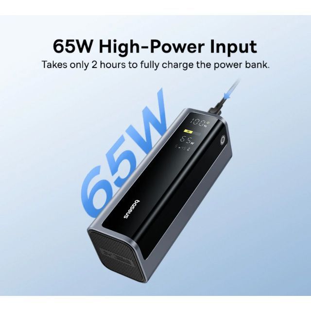 - Поддержка входной мощности до 65 Вт позволяет полностью зарядить повербанк примерно за 2 часа.