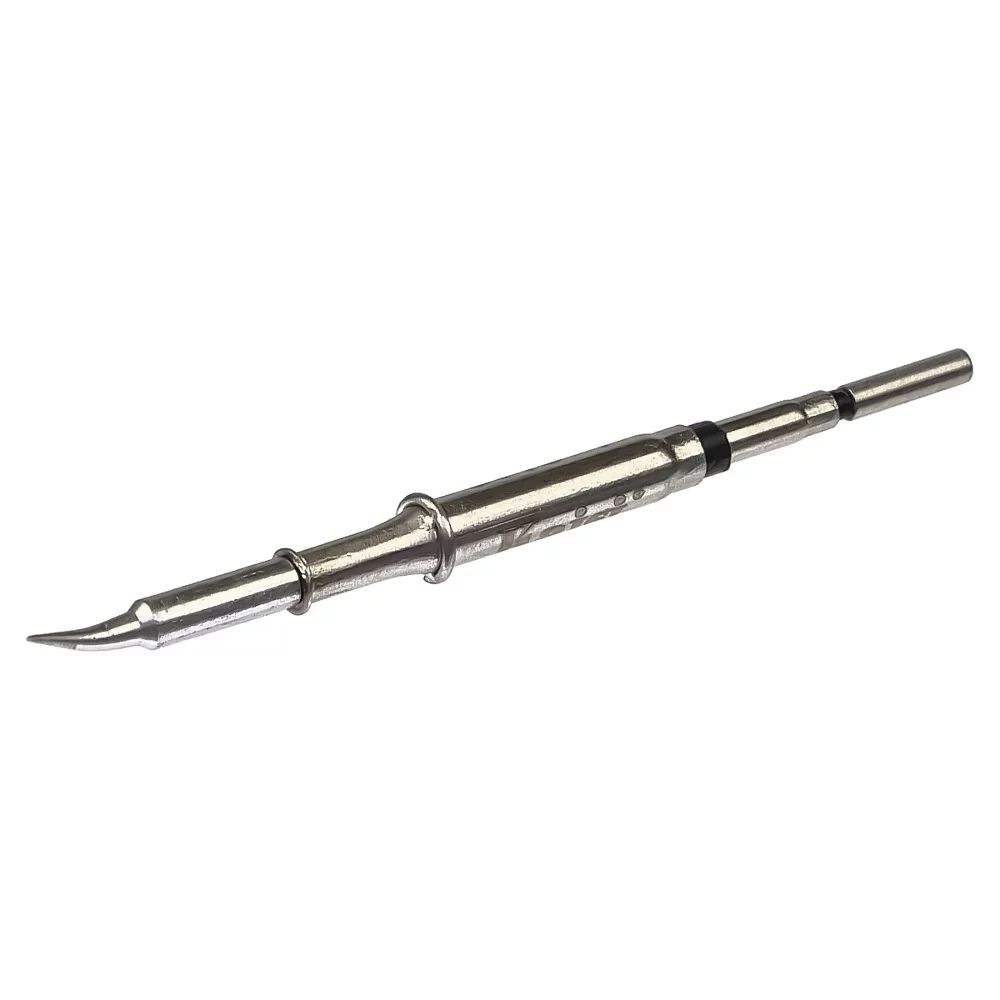 - Изогнутая геометрия жала позволяет легко подходить к контактам под углом, что существенно облегчает пайку мелких компонентов на плотных платах и в труднодоступных участках. Это особенно важно в ремонте мобильной техники, электроники и мелкой электроники.
