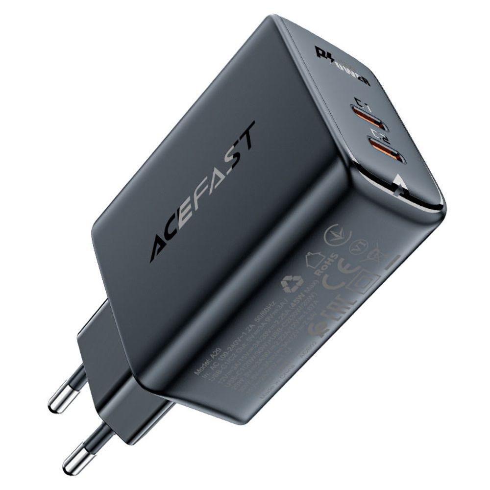 Сетевое зарядное устройство Acefast A29 2 Type-C QC PD 50W черное