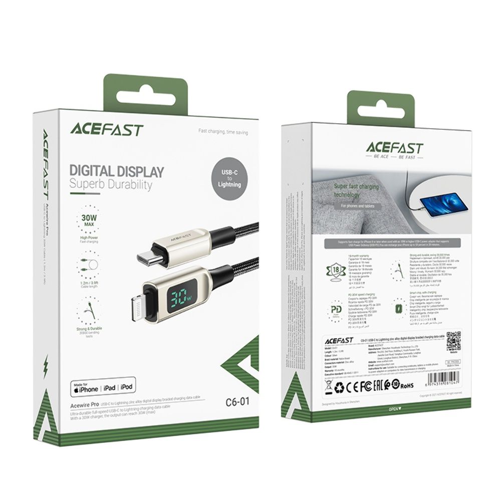 Кабель Acefast C6-01 с дисплеем Type-C to Lightning PD 30W 1.2m серебристый