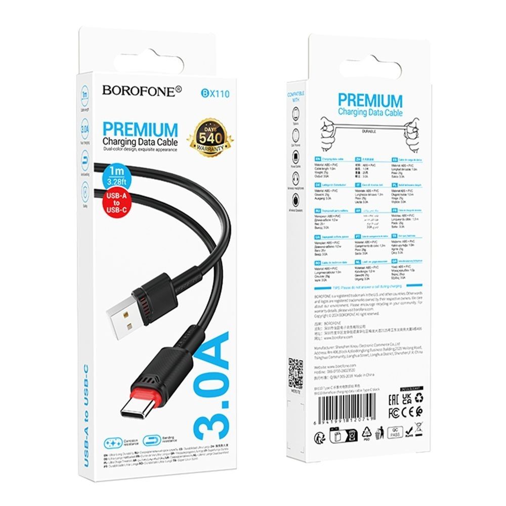 USB кабель Borofone BX110 Type-C 3A — это надежный и функциональный аксессуар, разработанный для быстрой зарядки и стабильной передачи данных современных устройств. Модель сочетает в себе стильный внешний вид, продуманную конструкцию и качественные материалы, что делает её отличным выбором для ежедневного использования дома, в офисе или в дороге. Этот кабель полностью соответствует требованиям большинства гаджетов с разъёмом Type-C и обеспечивает безопасную подачу питания с высокой скоростью.
