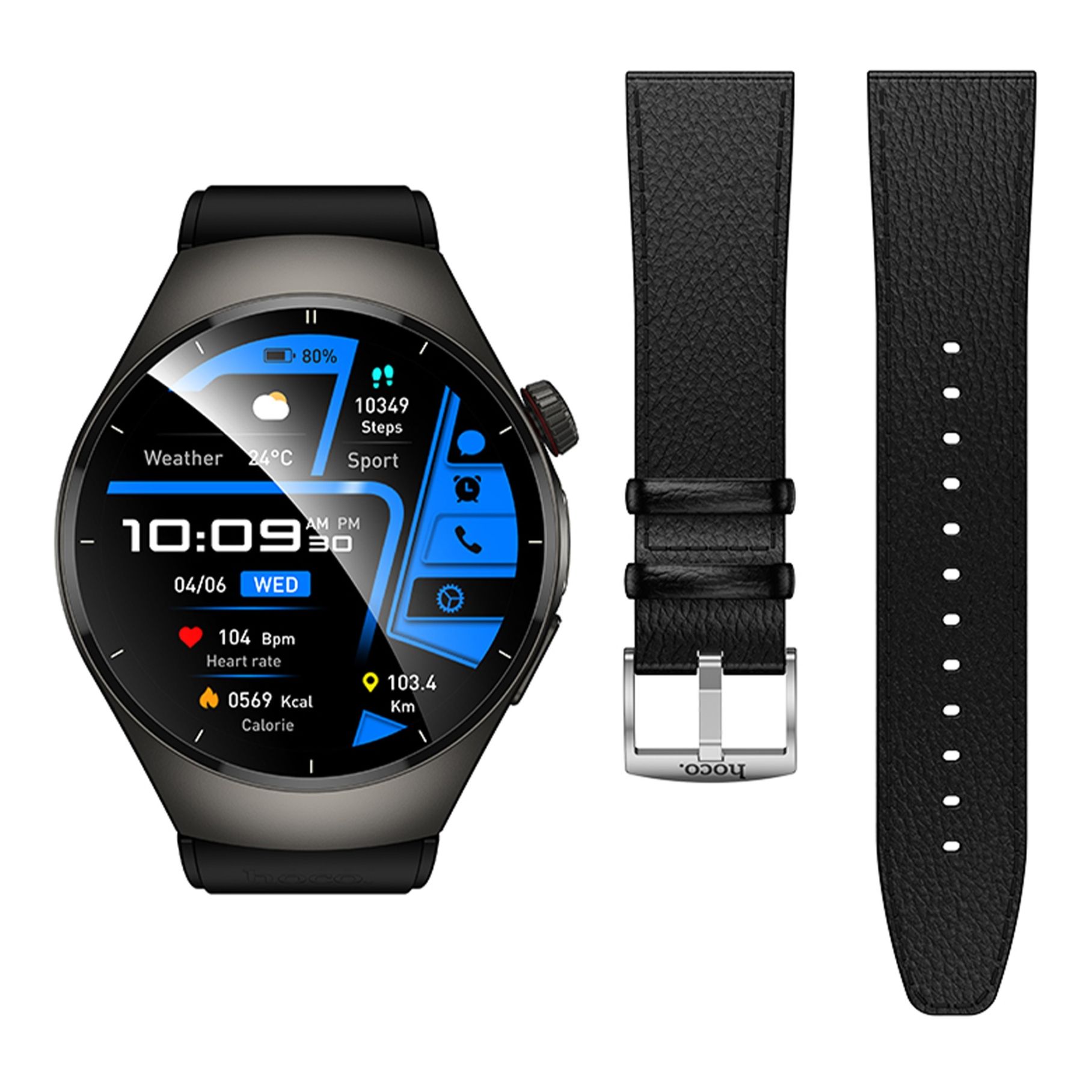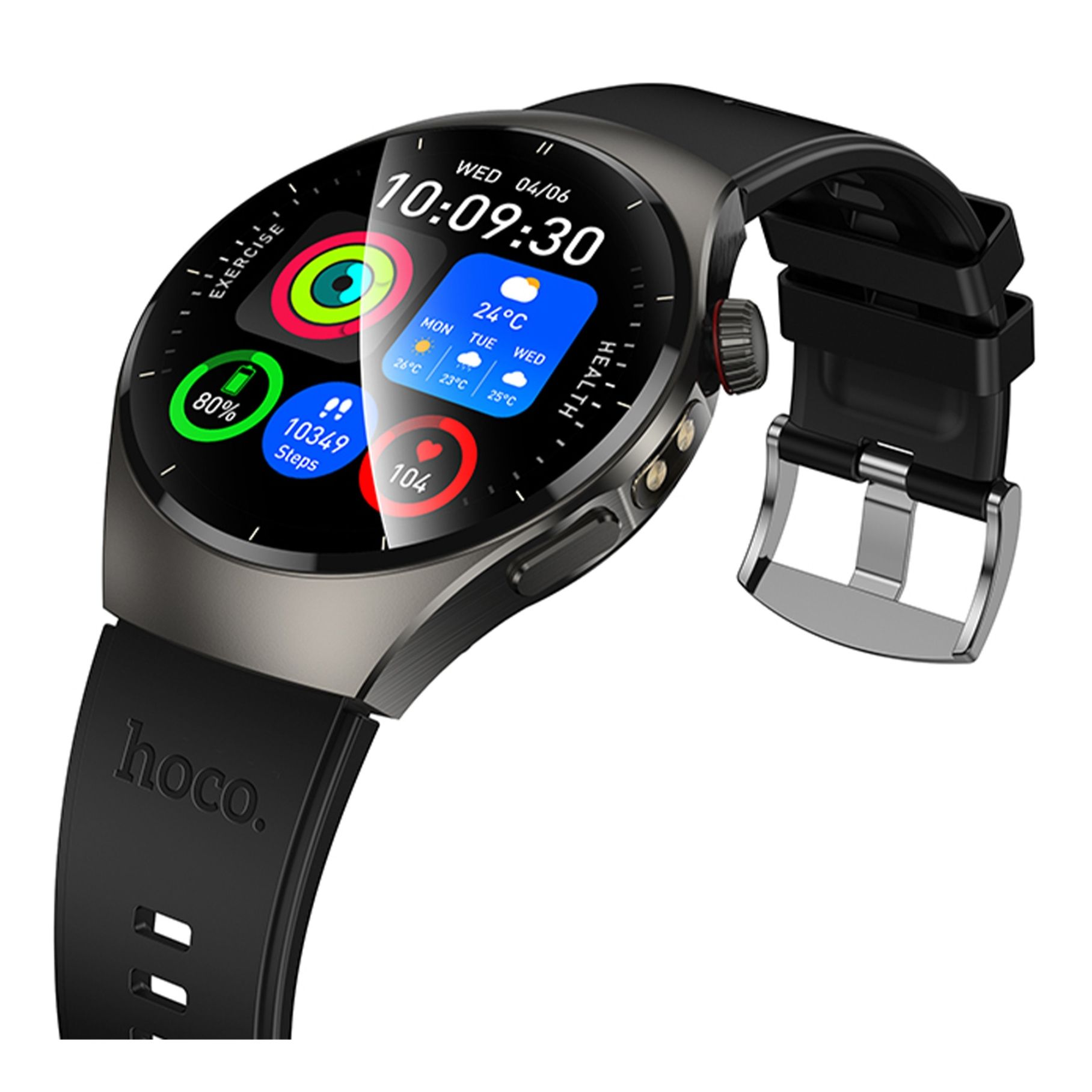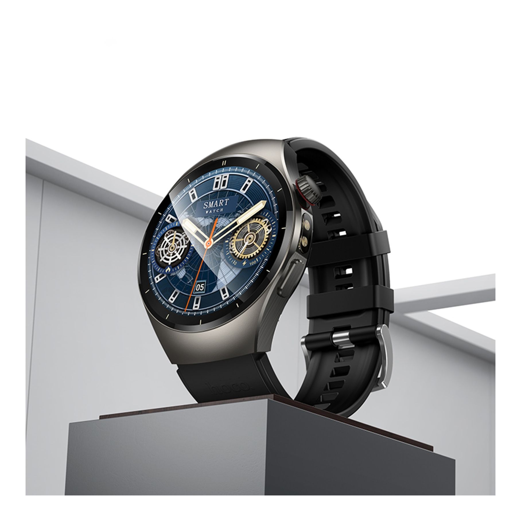 - Круглый циферблат с аккуратными линиями корпуса делает Hoco Y40 гармоничным аксессуаром для любого стиля.
