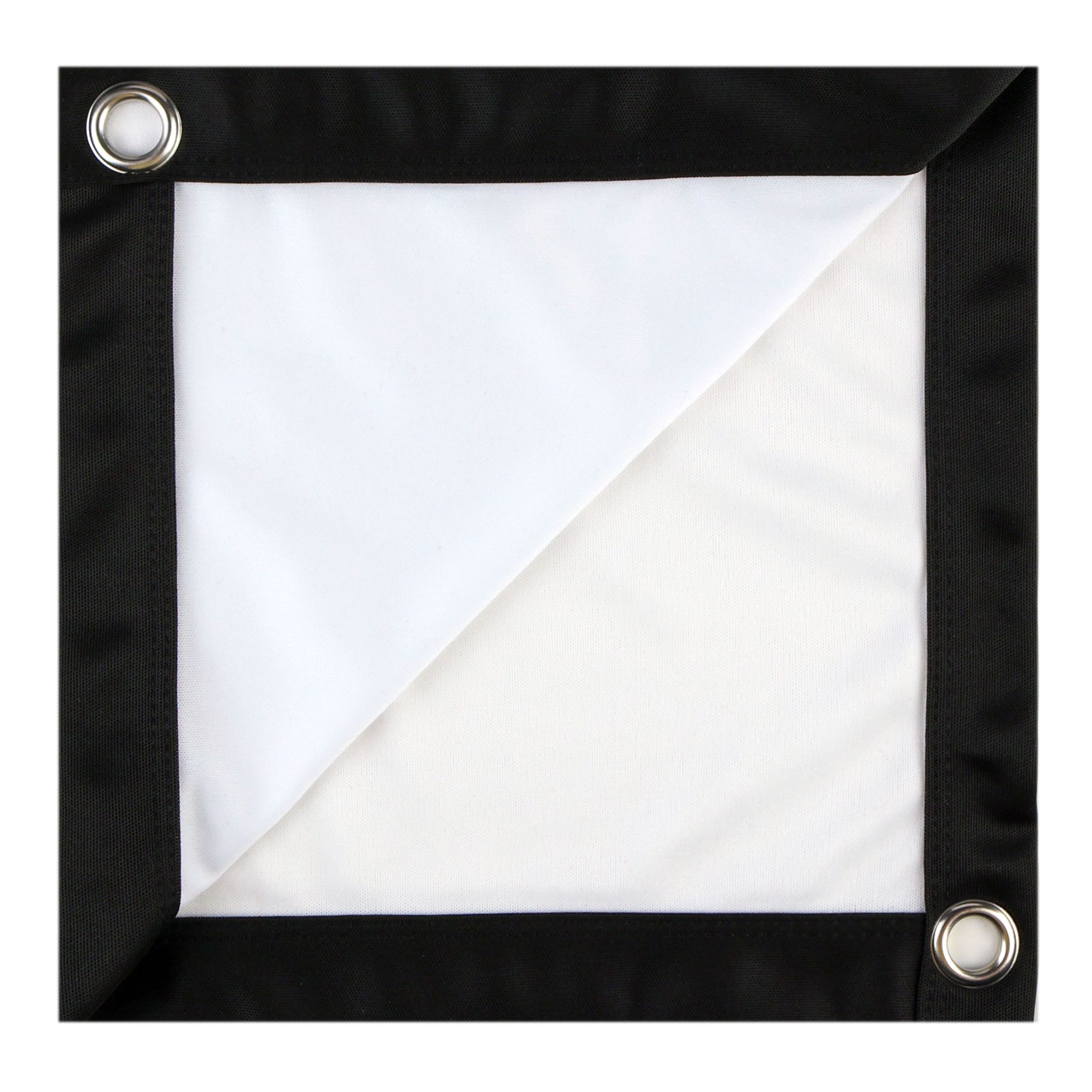 - Благодаря люверсам этот экран можно закрепить на открытом пространстве с помощью шнуров или растяжек, что удобно для презентаций, кинопросмотров и мероприятий на свежем воздухе.