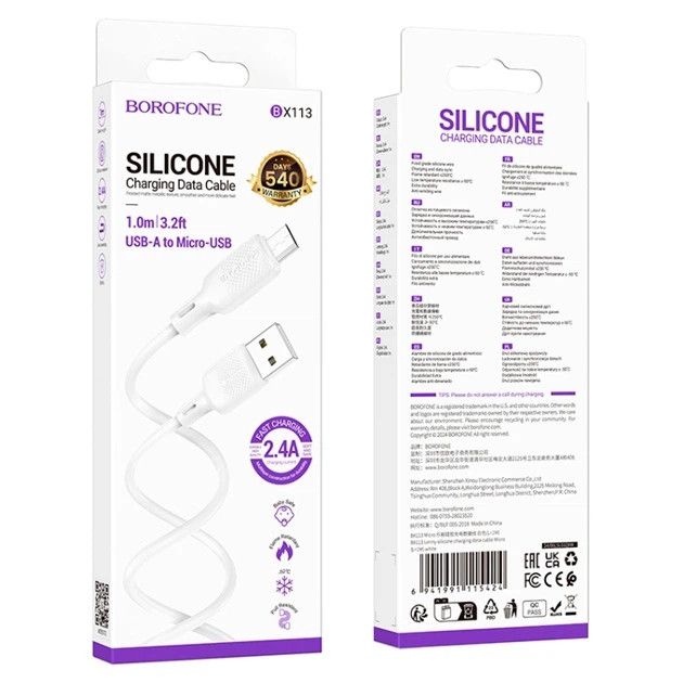 Кабель Borofone BX113 USB to MicroUSB — это надёжный и долговечный аксессуар для быстрой зарядки и стабильной передачи данных устройств с разъёмом MicroUSB. Модель разработана с акцентом на комфорт повседневного использования, высокую износостойкость и безопасную работу при различных условиях эксплуатации.