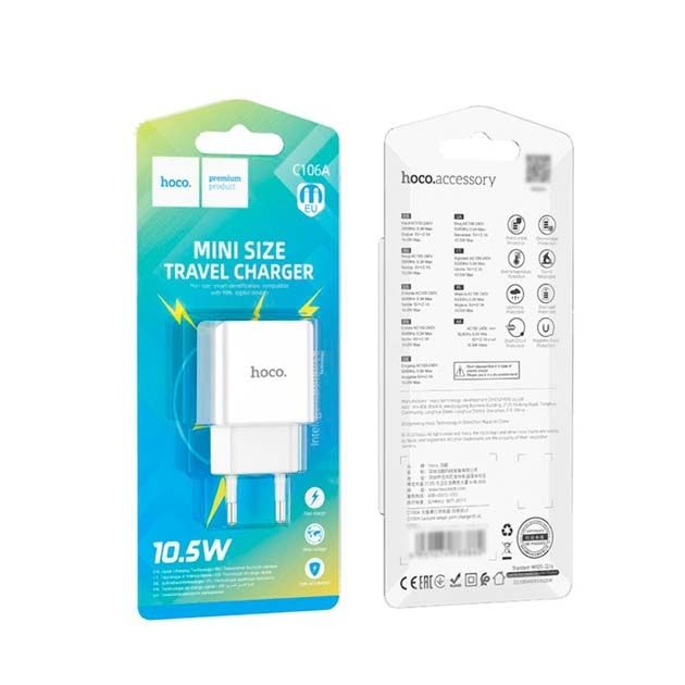Сетевое USB зарядное устройство Hoco C106A белого цвета
