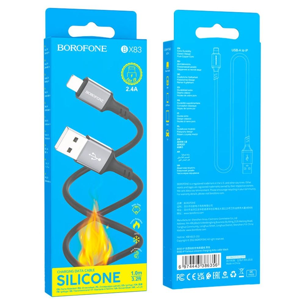 Кабель Borofone BX83 USB to Lightning — это качественный и надежный аксессуар для зарядки и синхронизации устройств Apple с разъемом Lightning. Он разработан для ежедневного использования и обеспечивает стабильную подачу питания и передачу данных без потерь. Благодаря прочным материалам, компактному весу и оптимальной длине этот кабель одинаково удобен для дома, офиса, автомобиля и поездок.