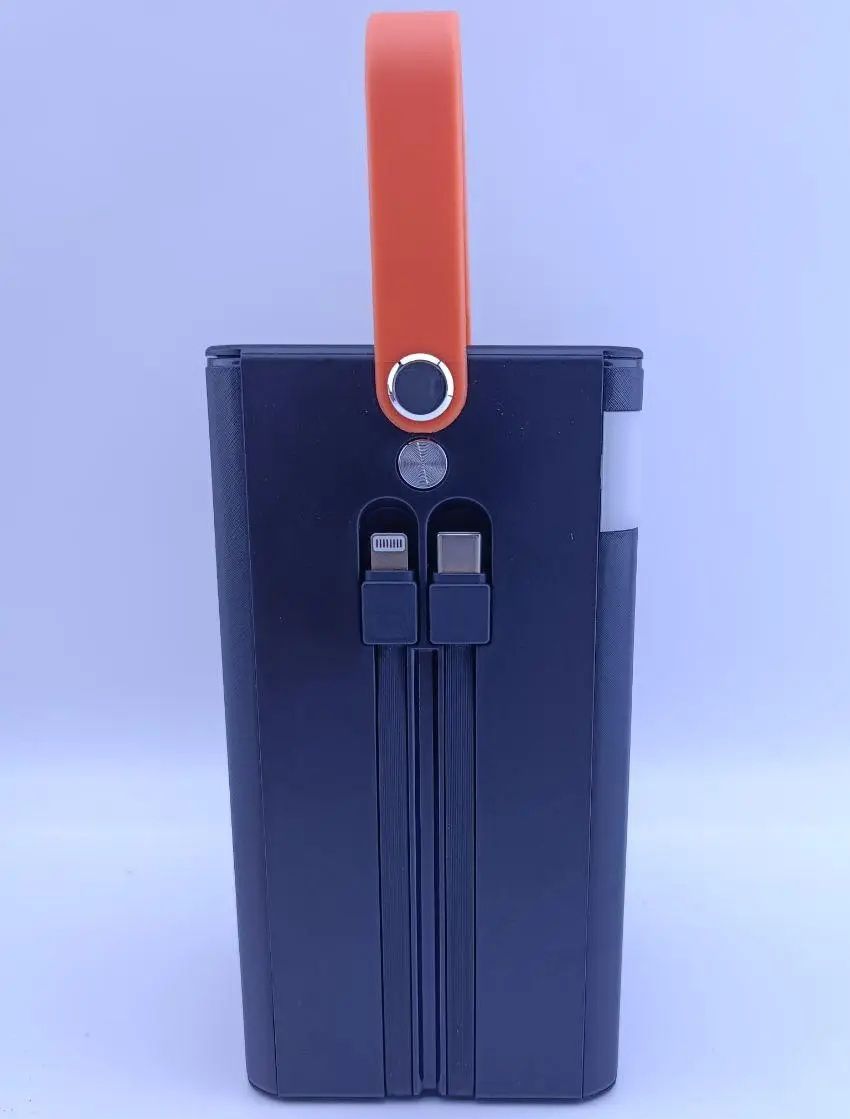 - Тканевая петля позволяет переносить повербанк, подвешивать его в палатке или на ветке дерева при использовании фонаря.