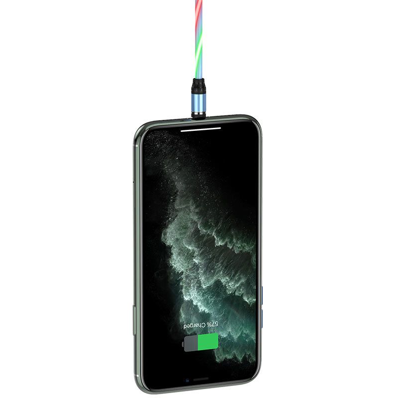 Hoco U90 USB - Lightning — это высококачественный и удобный кабель для зарядки устройств Apple, оснащённый магнитным коннектором и LED-подсветкой. Он обеспечивает безопасную и быструю зарядку, защищает разъём Lightning от износа, пыли и загрязнений, а также создаёт эффект визуального потока заряда благодаря бегущей подсветке. Этот кабель совместим с iPhone, iPad и iPod и подходит для использования с любым блоком питания или ноутбуком с USB портом.
