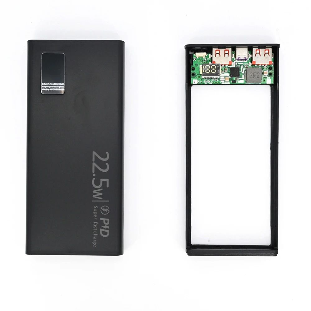 Корпус повербанка DIY Pro под пайку АКБ 2x1260110 до 20000mAh PD 22.5W Type-C, MicroUS, USB-A Black