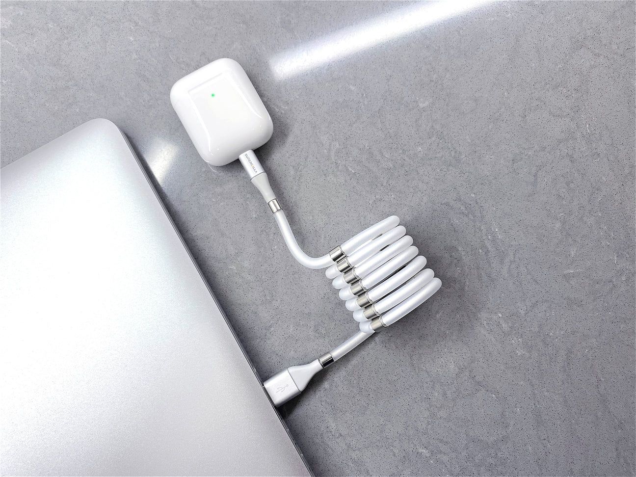 - Этот кабель самостоятельно складывается в аккуратную форму благодаря встроенной магнитной технологии. Это исключает запутывание и упрощает хранение.