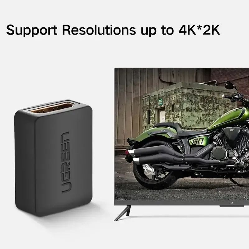 Адаптер UGREEN HDMI Female to Female предназначен для соединения двух HDMI кабелей между собой, позволяя увеличивать длину подключения и превращать штекерный порт HDMI в гнездовой для удобного подключения другого устройства.