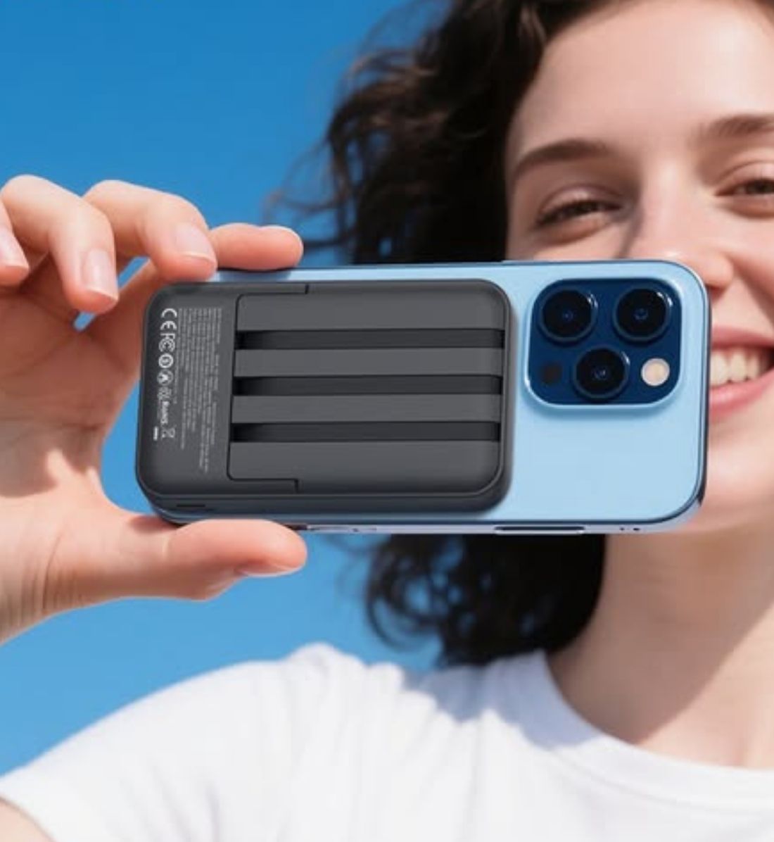 - Мощная магнитная фиксация обеспечивает точное позиционирование смартфона и стабильную беспроводную зарядку. Особенно удобно для владельцев iPhone с поддержкой MagSafe — достаточно приложить устройство к повербанку для начала зарядки.