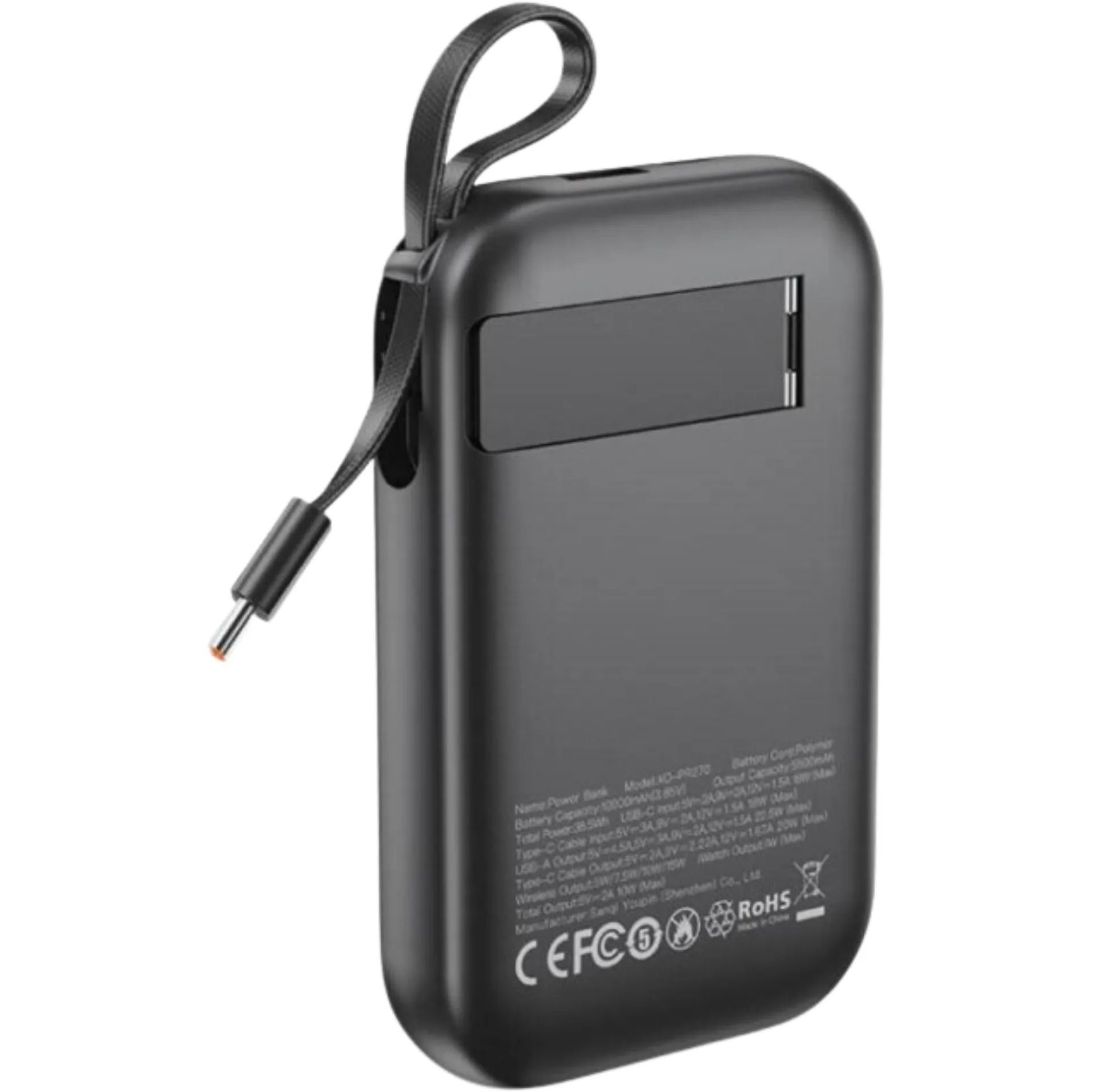 Компактный корпус, цифровой дисплей и встроенная подставка делают этот повербанк удобным не только для зарядки, но и для комфортного использования смартфона во время просмотра видео или видеозвонков.