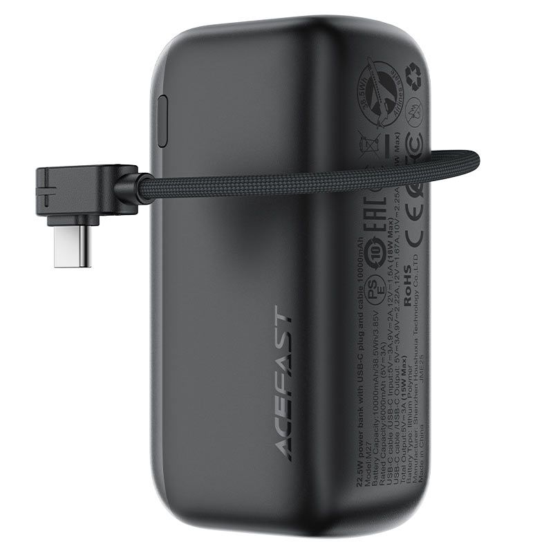 Портативный аккумулятор ACEFAST M27 — это современное и надежное решение для зарядки смартфонов, планшетов и других электронных устройств в дороге, на работе или во время путешествий. Модель оснащена встроенным кабелем с разъёмом Type-C, поддерживает быструю зарядку с мощностью до 22.5 Вт и обладает ёмкостью 10000 мАч, что позволяет несколько раз зарядить мобильные устройства без доступа к сети.