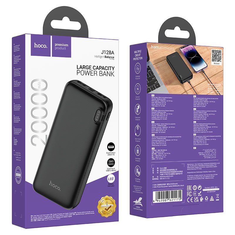 HOCO J128A Powerful — это мощный портативный внешний аккумулятор, предназначенный для надежной подзарядки мобильных устройств в любых условиях. Благодаря ёмкости 20000 mAh он способен обеспечить несколько циклов зарядки смартфонов, планшетов и других гаджетов, что делает его удобным решением для ежедневного использования, командировок, путешествий и длительных поездок.