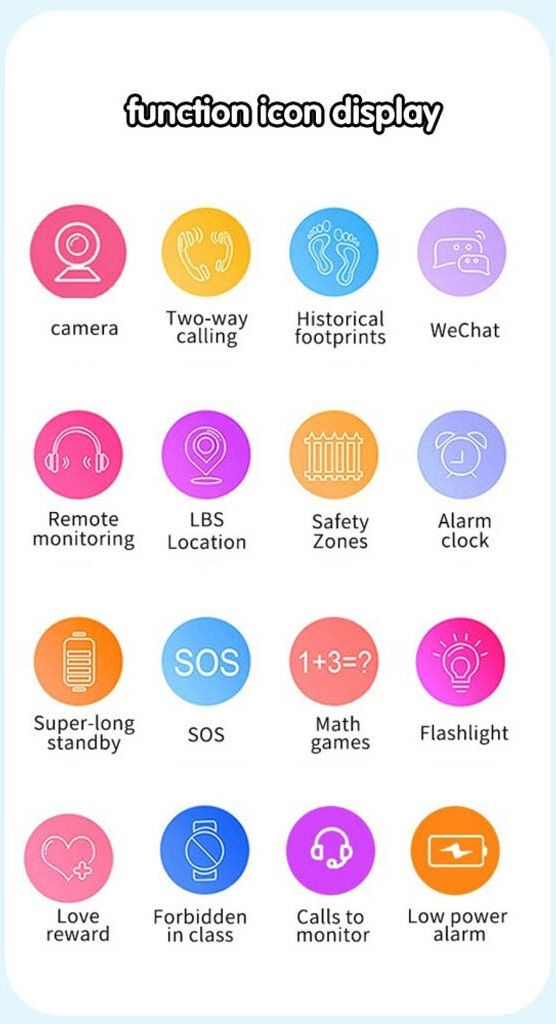 Эти часы оснащены ярким сенсорным дисплеем, встроенной камерой, модулем GPS/LBS позиционирования, поддержкой SIM-карты, а также функциями звонков, голосовых сообщений и кнопкой экстренного вызова SOS. Благодаря этому ребенок может легко связаться с родителями в любой момент.