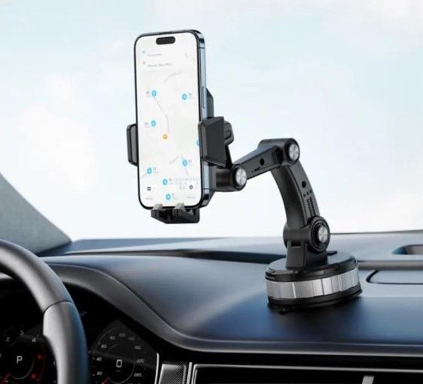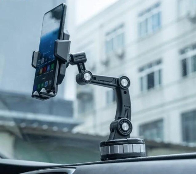 Этот держатель оснащен мощной вакуумной присоской, позволяющей устанавливать устройство на лобовое стекло или приборную панель автомобиля. Благодаря поворотному механизму и трехсекционной штанге можно легко настроить оптимальный угол обзора и расстояние до смартфона, что обеспечивает максимальный комфорт и безопасность во время вождения.