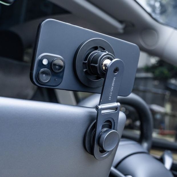 - Встроенные неодимовые магниты надежно удерживают смартфон на держателе. Устройство остается устойчивым даже при езде по неровным дорогам, резких маневрах или торможениях.