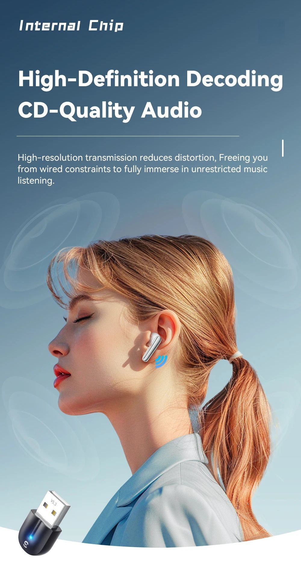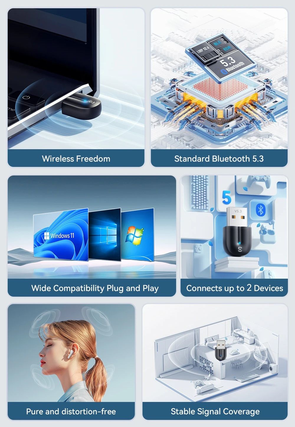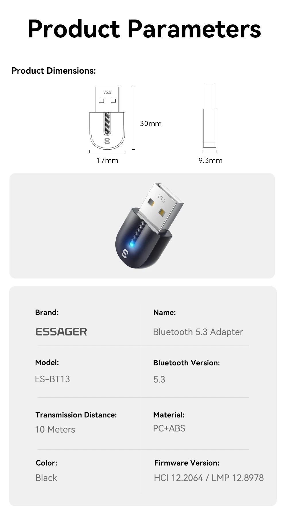 - Этот адаптер оснащен чипом Bluetooth 5.3, который обеспечивает более высокую скорость передачи данных, стабильное соединение и энергоэффективную работу беспроводных устройств.