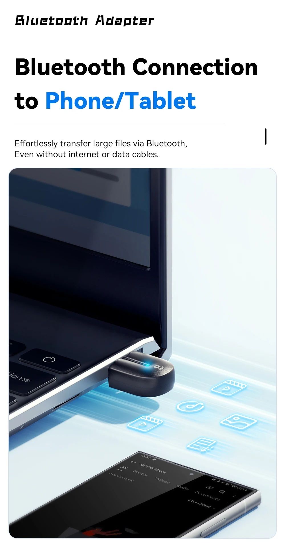Это компактный USB-адаптер, предназначенный для добавления функции Bluetooth на настольный компьютер или ноутбук. Устройство позволяет подключать различные беспроводные аксессуары и устройства без использования кабелей, обеспечивая стабильную передачу данных и качественный звук.