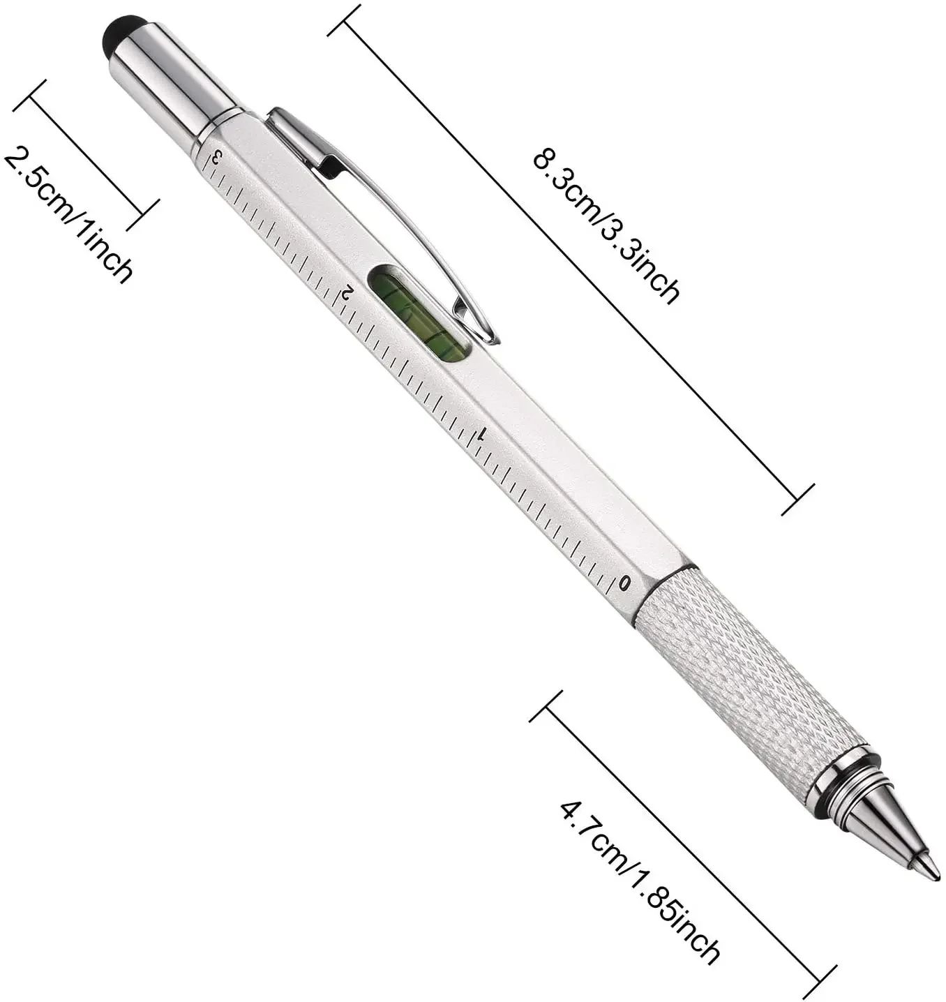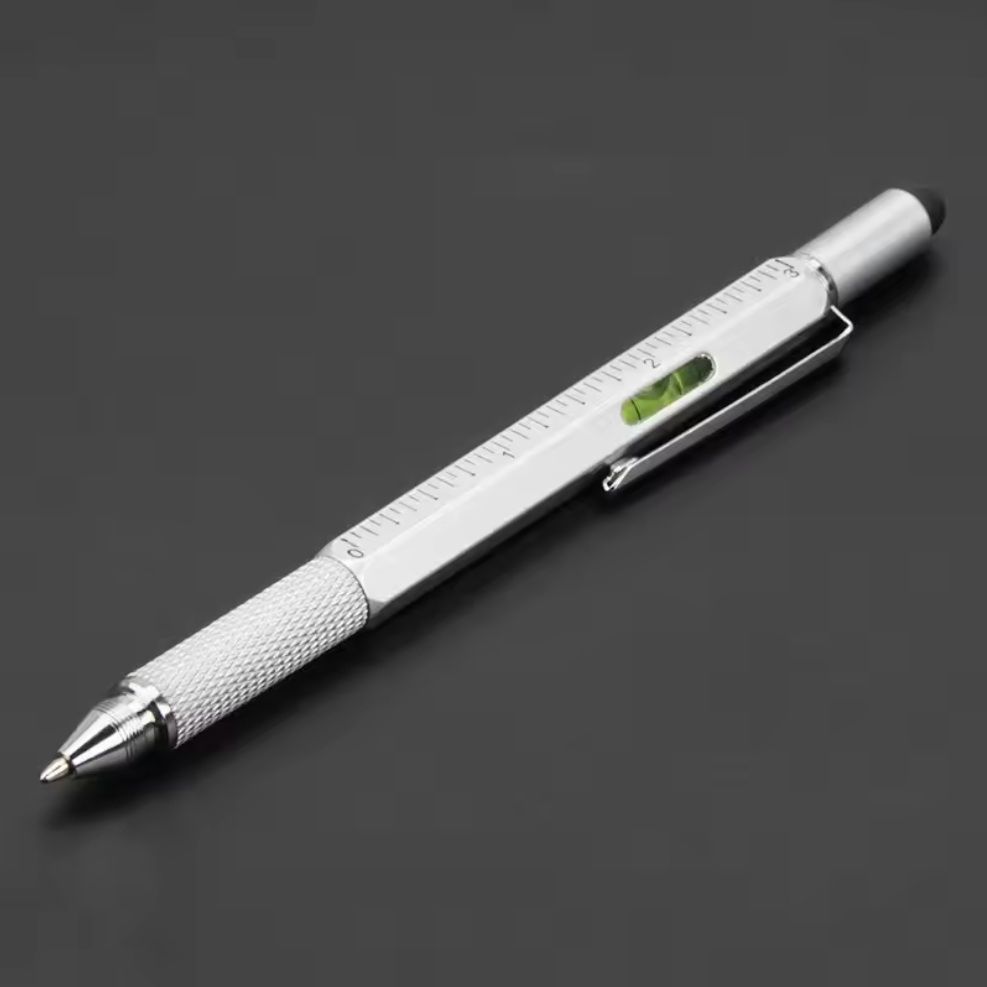 Мультитул-ручка 6в1 Стилус Отвёртка (два вида) Уровень Линейка SILVER