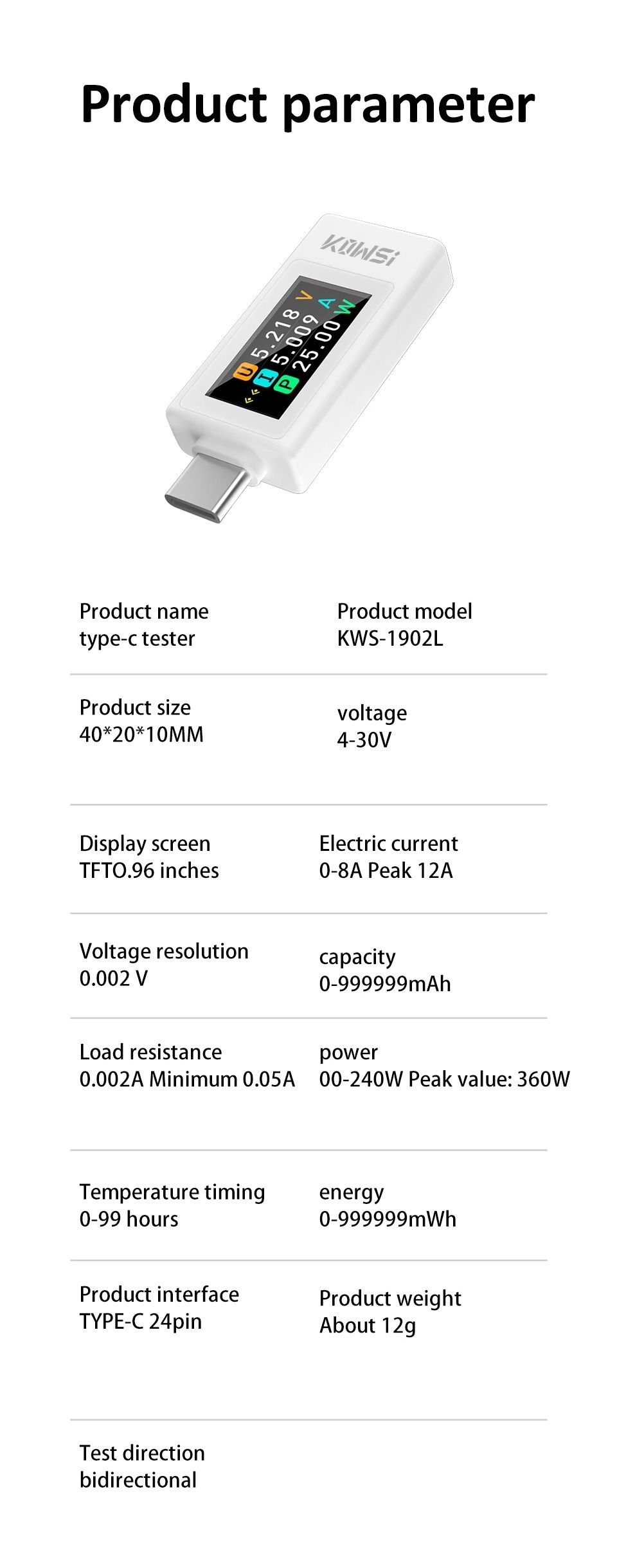Многофункциональный Type-C тестер KOWSI KWS-1902L