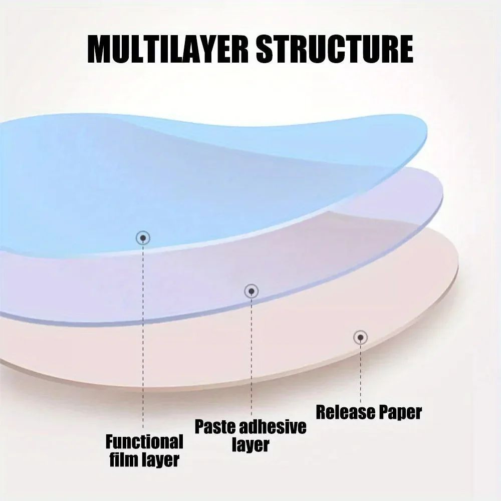 - Монтаж не требует специальных инструментов или навыков. Достаточно очистить поверхность и наклеить пленку.