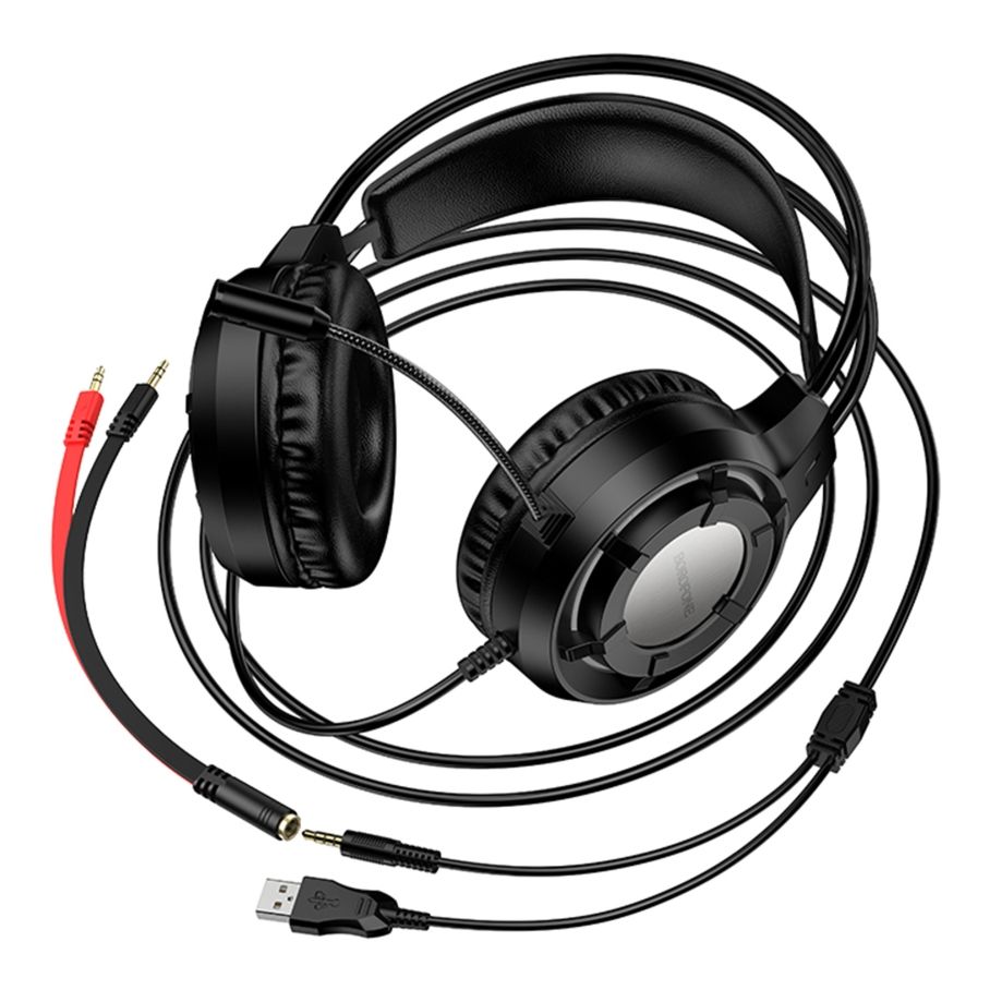 Borofone BO112 Wave — это современные игровые наушники, разработанные для комфортных и продолжительных игровых сессий, общения в голосовых чатах, стриминга и повседневного использования. Модель сочетает в себе мощное звучание, удобную конструкцию и стильный геймерский дизайн с RGB-подсветкой.