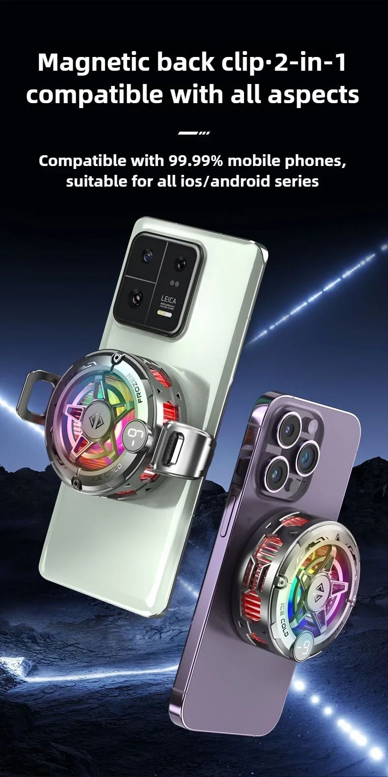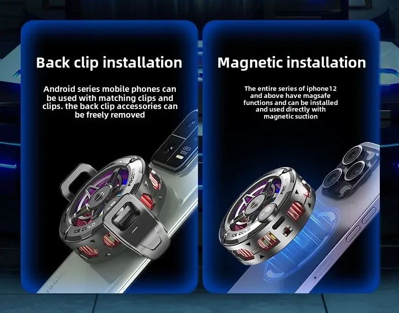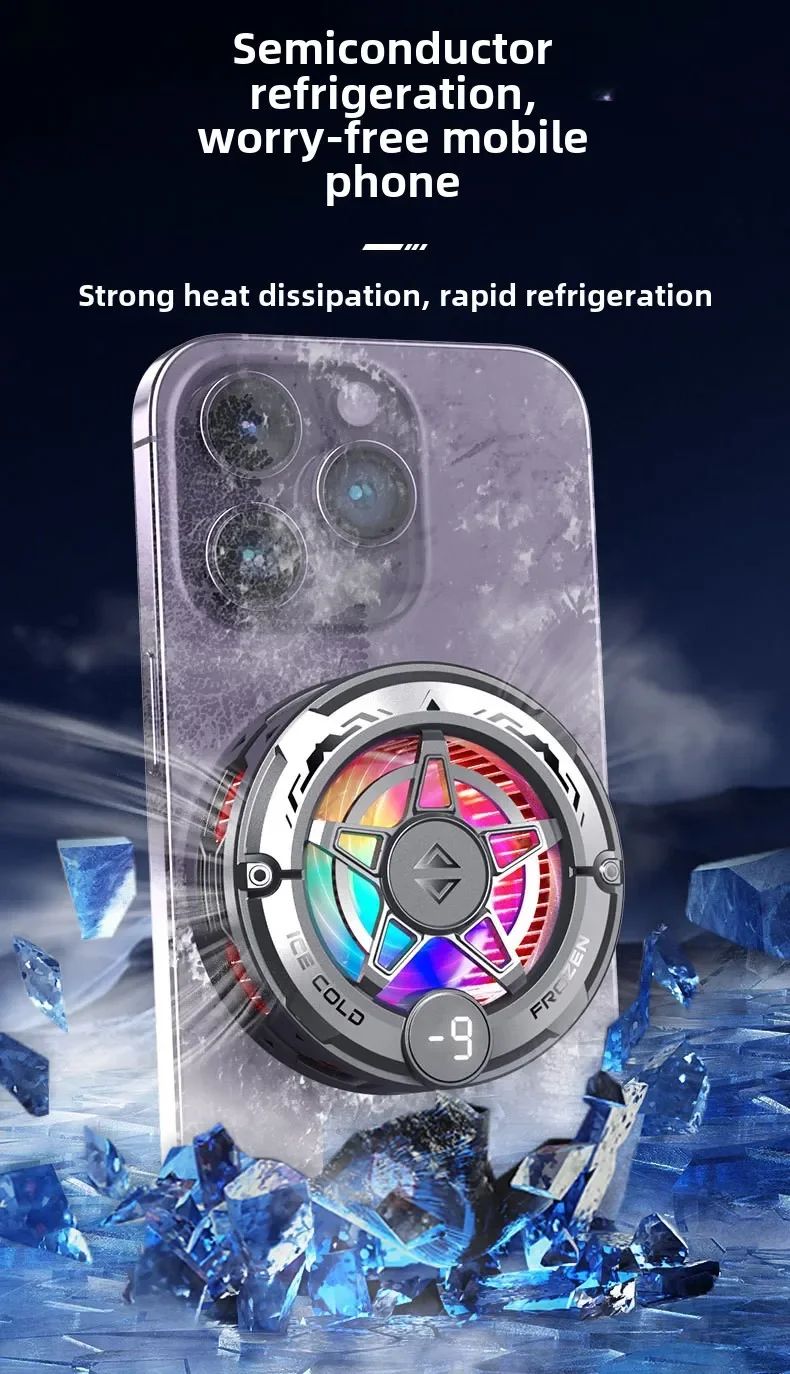 Модель оснащена мощной системой охлаждения с использованием полупроводникового элемента (эффект Пельтье), что позволяет быстро отводить тепло и поддерживать стабильную работу смартфона. Благодаря универсальной системе крепления 2 в 1 — магнитной фиксации и зажиму — кулер совместим практически с любыми мобильными устройствами.