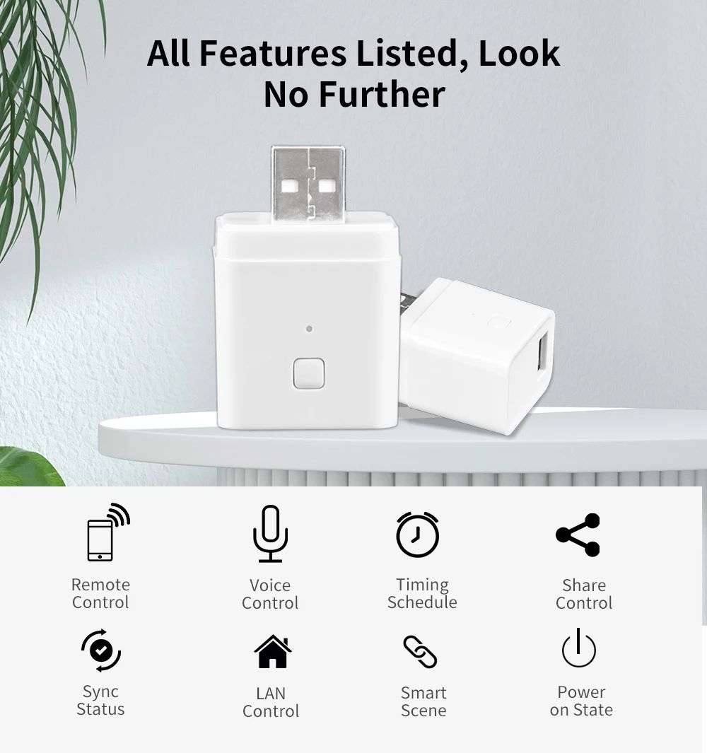 Компактный умный Wi-Fi адаптер Tuya — это универсальное решение для удаленного управления питанием USB-устройств. С его помощью вы можете включать и выключать питание, настраивать расписание работы и управлять подключенными устройствами через смартфон или голосовые ассистенты.