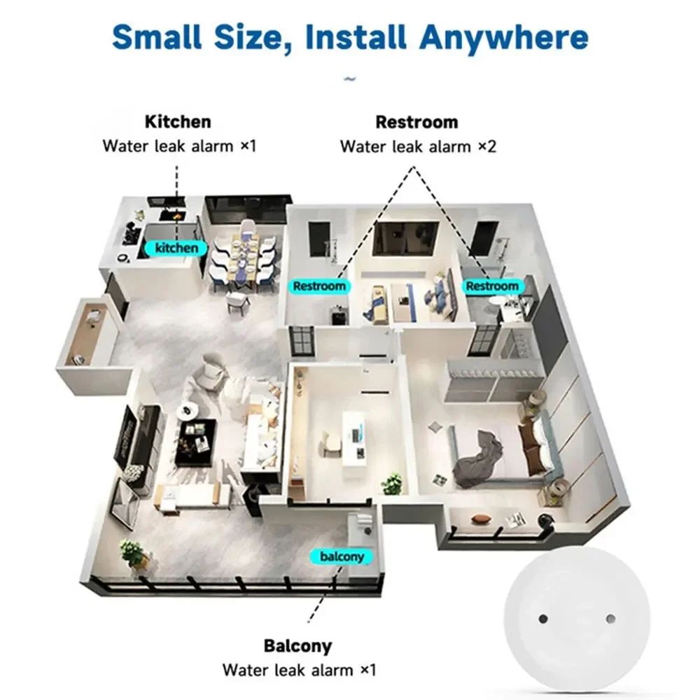 Идеально подходит для установки в местах повышенного риска: кухня, ванная комната, балкон, под раковиной, рядом со стиральной машиной или бойлером.