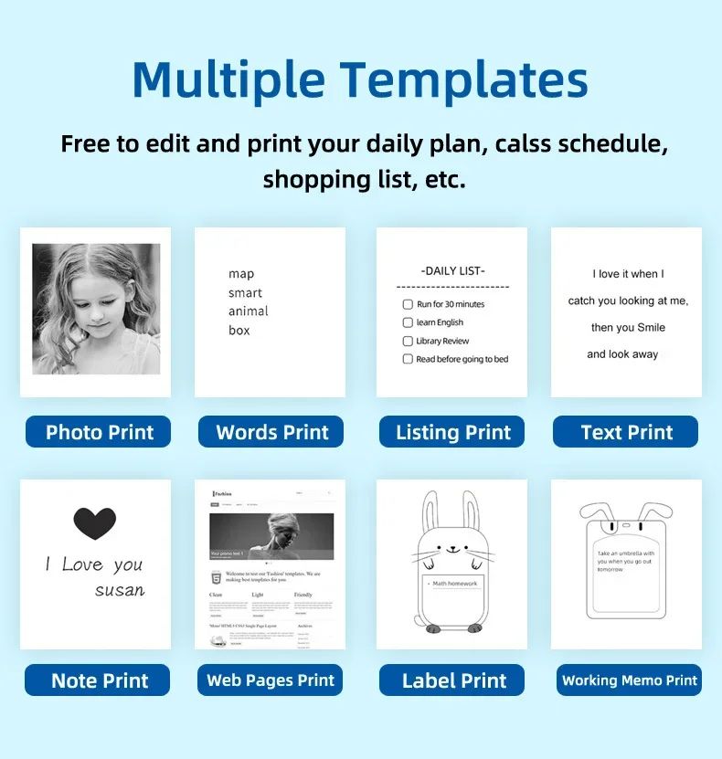 Устройство идеально подходит для повседневного использования: учебы, ведения заметок, оформления дневников, печати чек-листов, фотографий и наклеек. Компактный размер позволяет всегда носить принтер с собой.