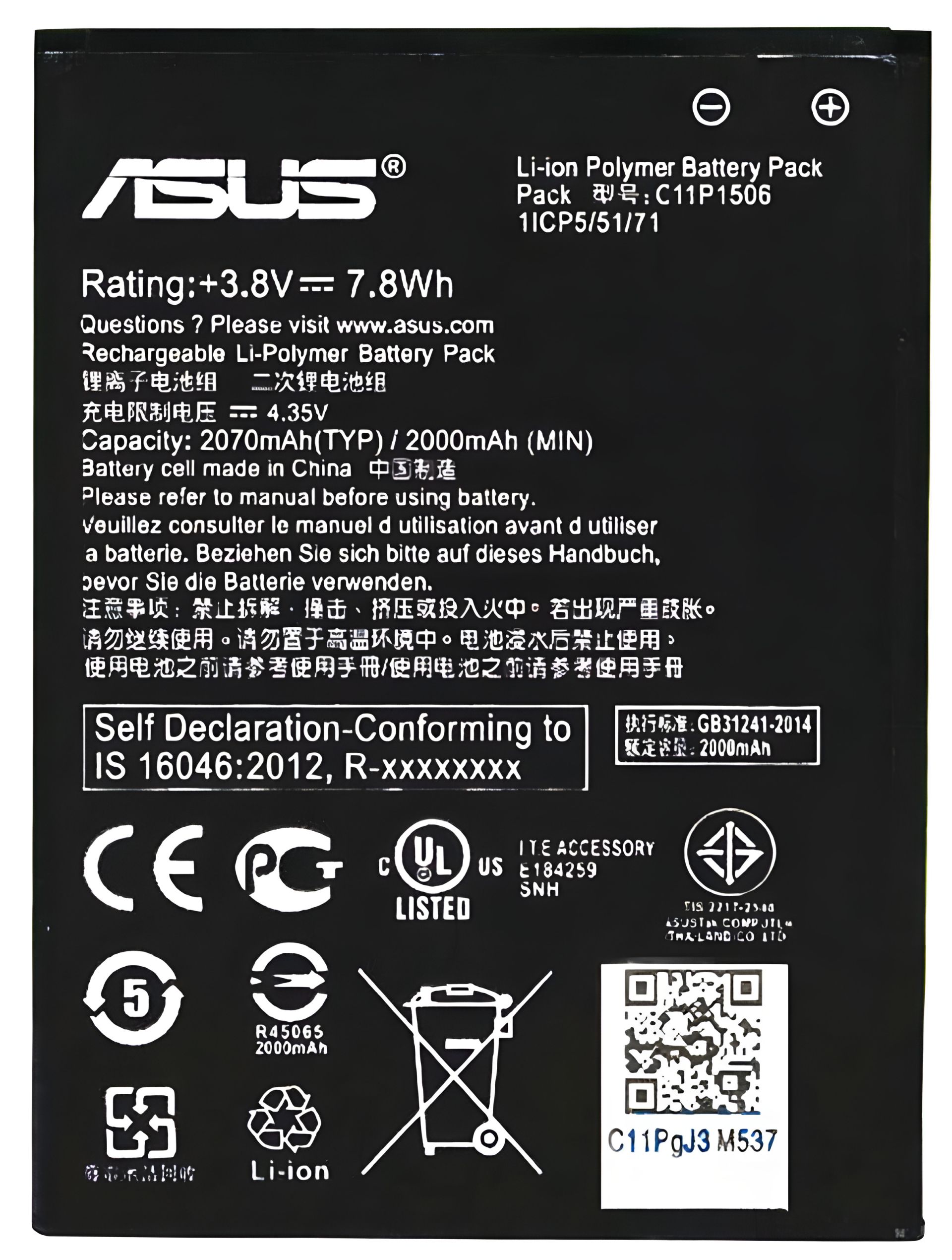 Для моделей Asus: ZC500TG, ZenFone Go Маркировка АКБ: C11P1506