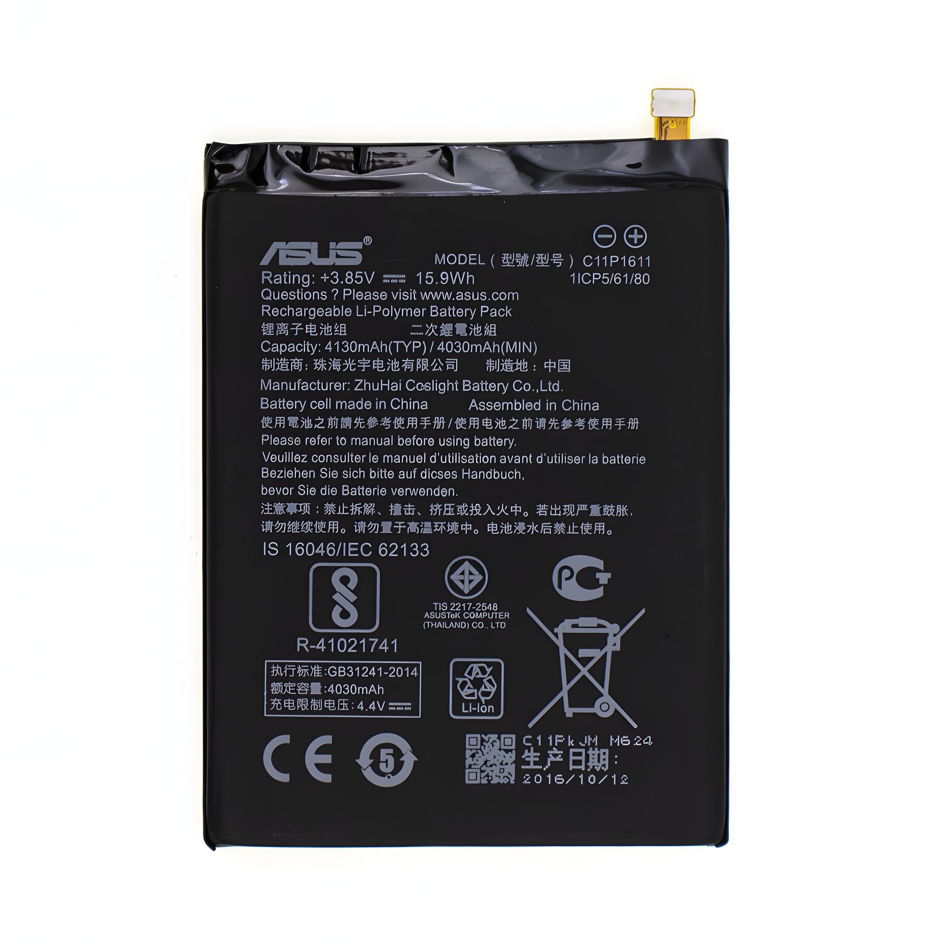 Для моделей Asus: ZenFone 3 Max, ZC520TL Маркировка АКБ: C11P1611