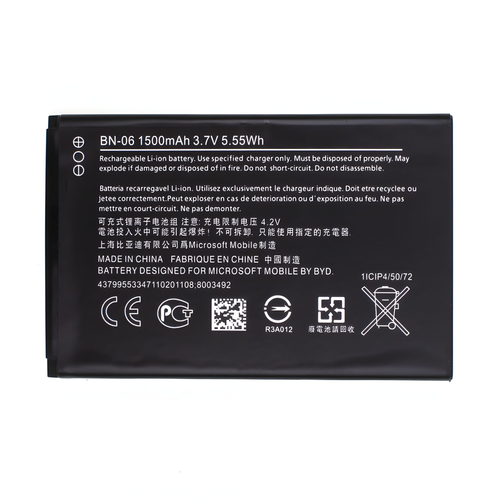 Для моделей Nokia (Microsoft): Lumia 430, RM-1099 Маркировка АКБ: BN-06