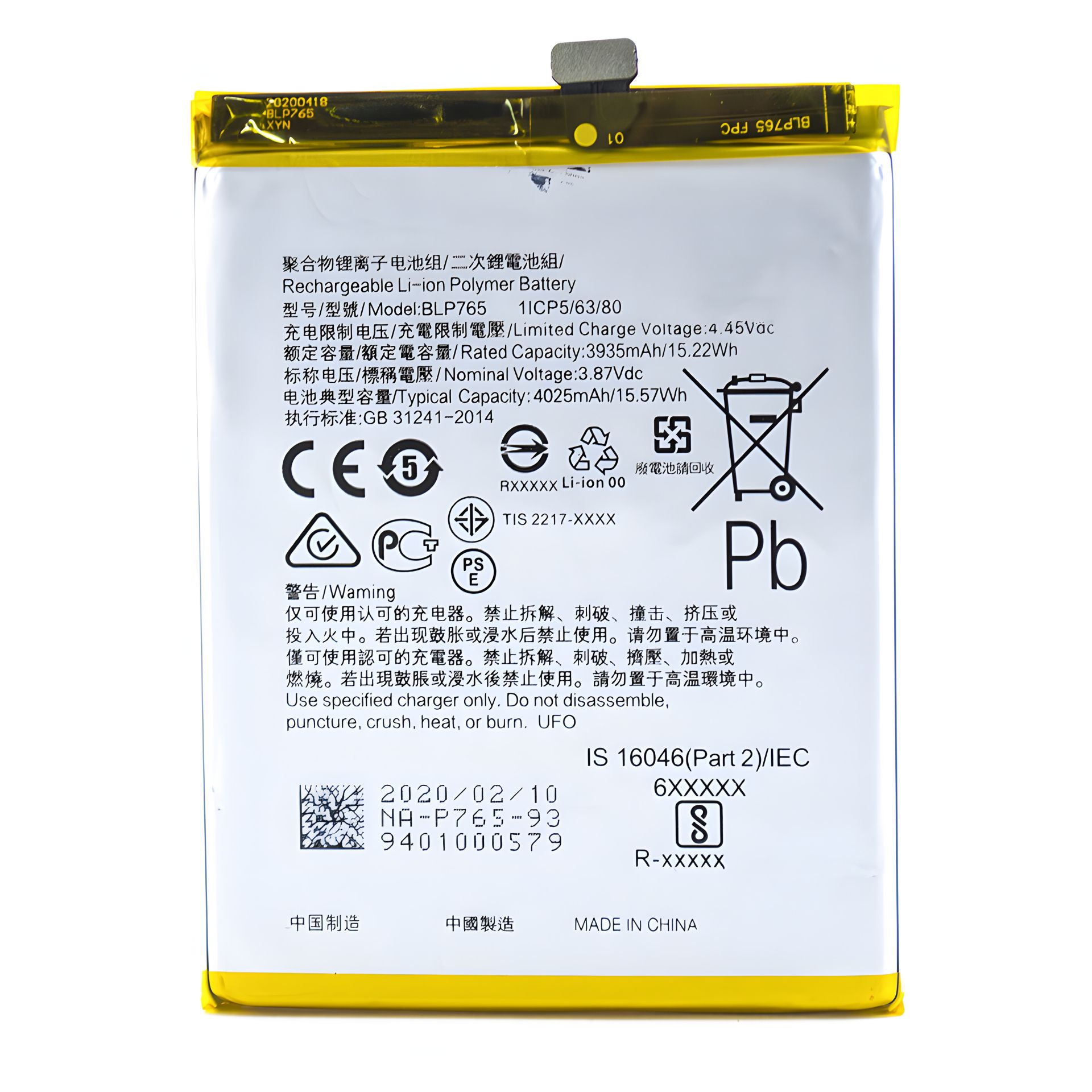 Аккумулятор для Realme A91/ F15 (2020) BLP765 [Original PRC] 12 мес. гарантии