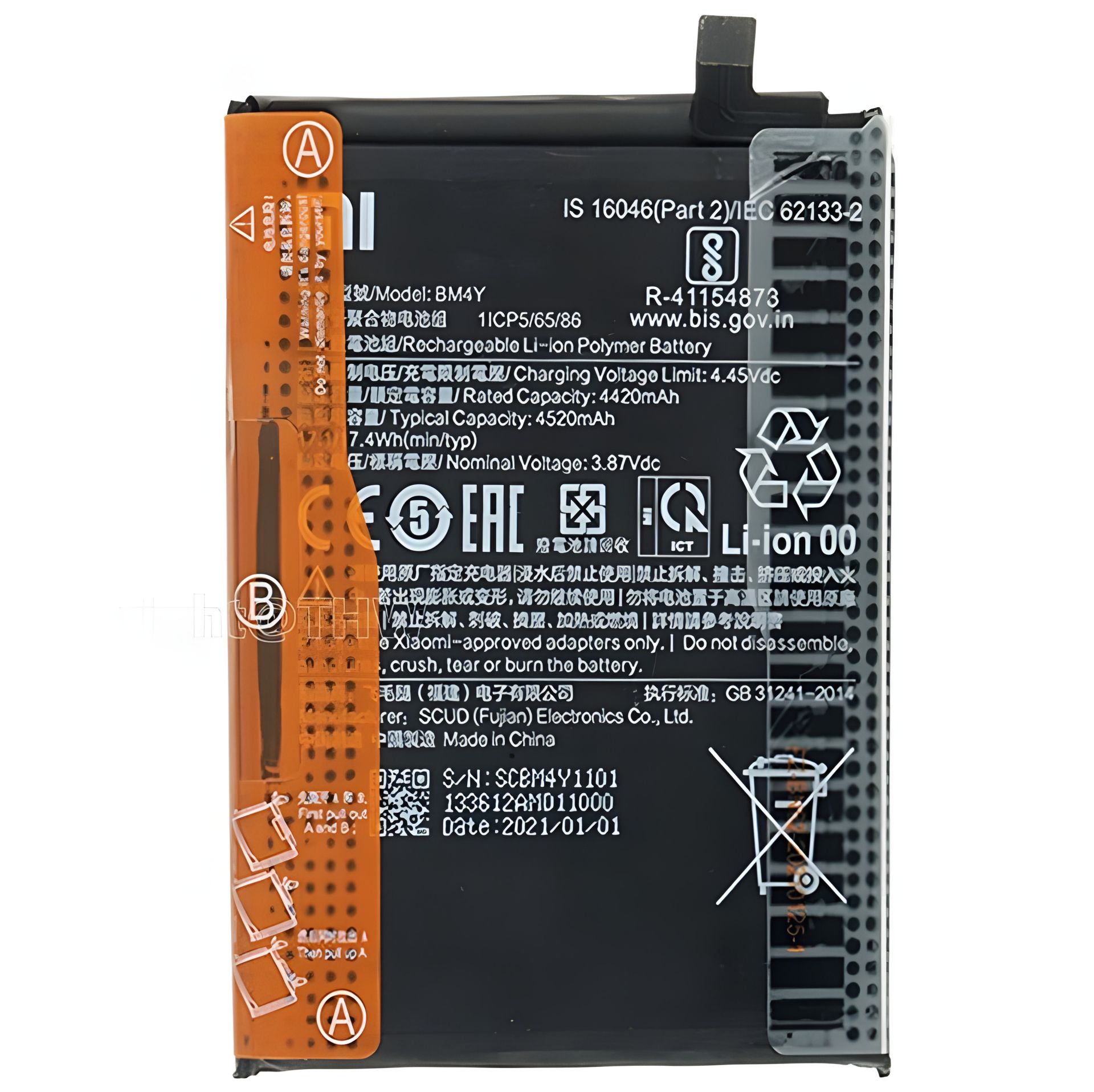 Аккумулятор для Xiaomi Mi 11x / Redmi K40 / Redmi K40 Pro / Poco F3 BM4Y (4520 mAh) [Original] 12 мес. гарантии