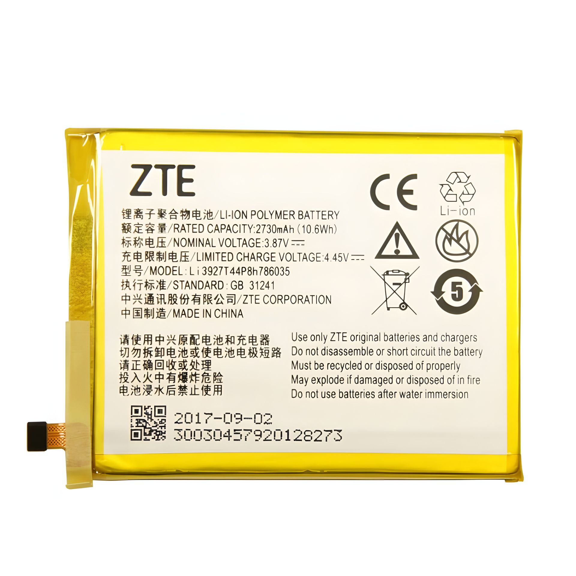 Для моделей ZTE: Blade V8 Маркировка АКБ: Li3927T44P8h786035