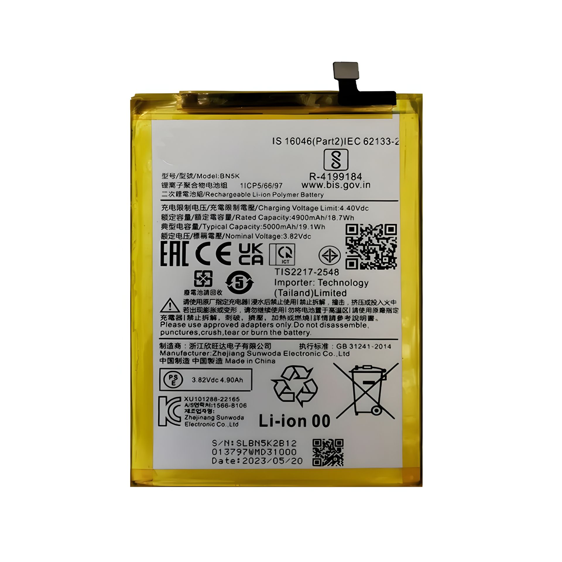 Аккумулятор Xiaomi BN5K Redmi 12C, Poco C55, 5000 mAh [Original PRC] 12 мес. гарантии