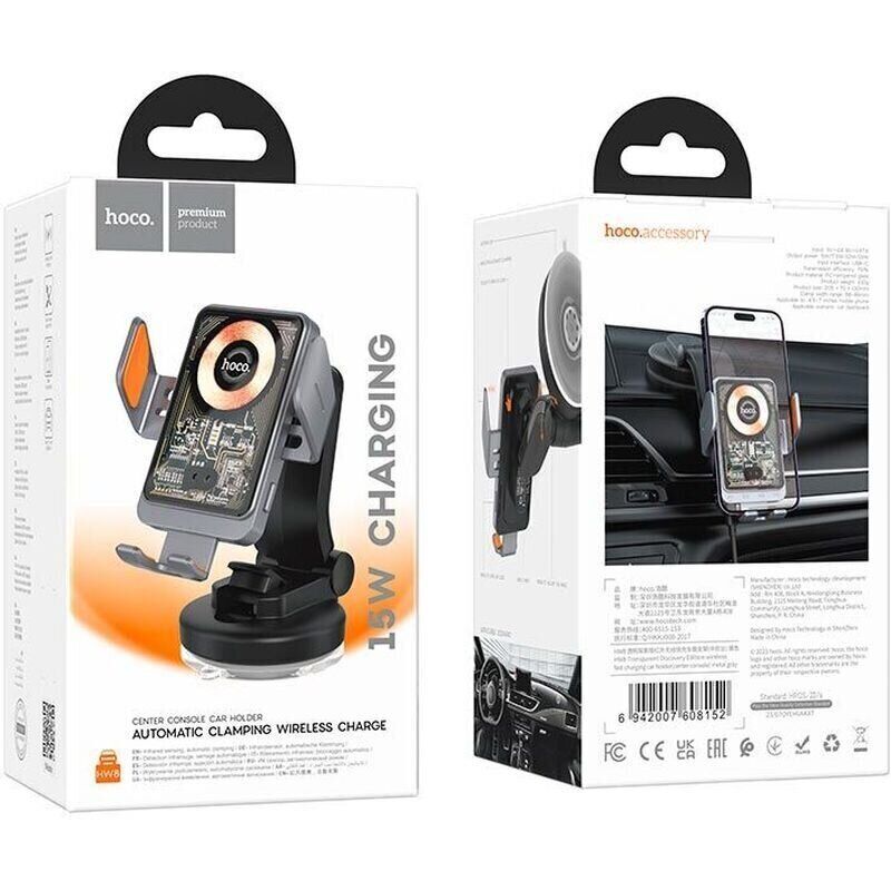 Автомобильный держатель Hoco HW8 с беспроводной зарядкой (center console) серый