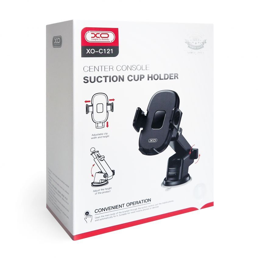 Автодержатель XO C121 — это надежное и удобное решение для фиксации смартфона в автомобиле. Модель оснащена мощной вакуумной присоской, которая позволяет установить держатель на лобовое стекло или приборную панель, обеспечивая стабильную фиксацию даже при движении по неровной дороге.