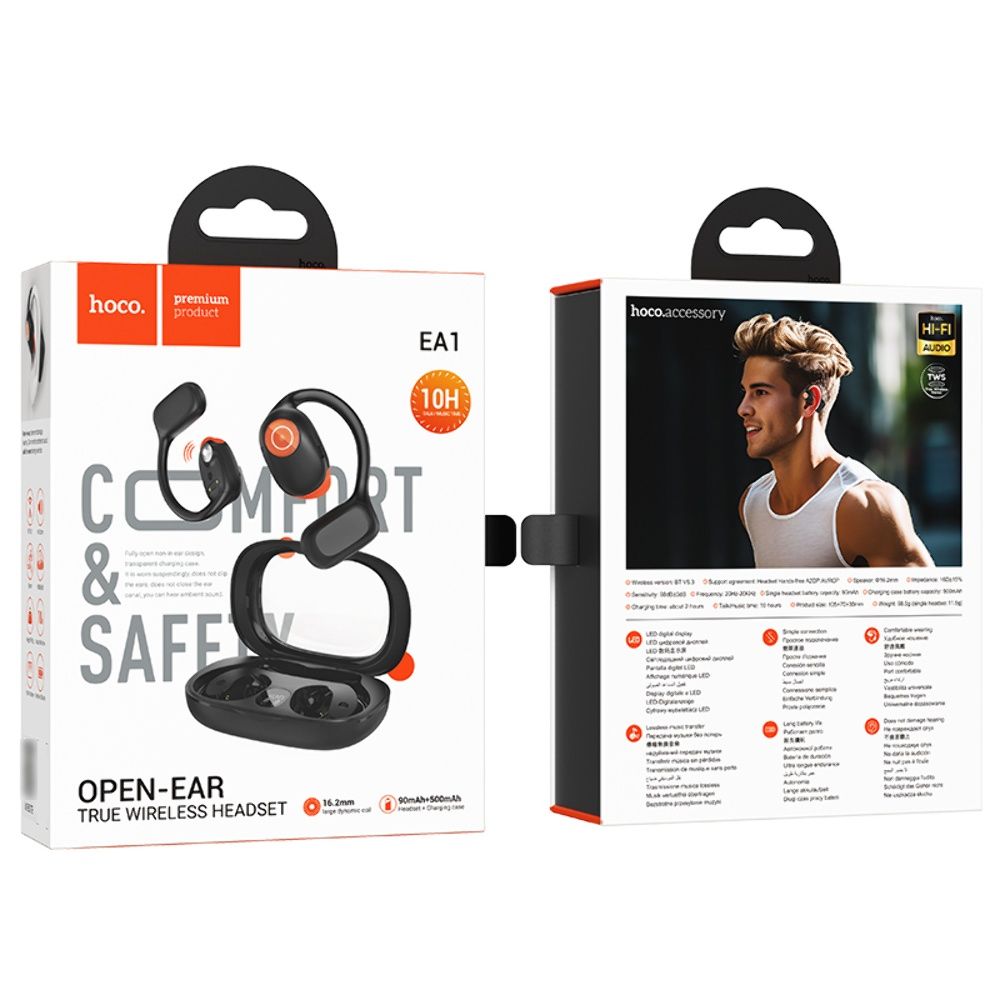 Беспроводные наушники Hoco EA1 – это стильная и современная гарнитура открытого типа, разработанная для комфортного повседневного использования. Их уникальная конструкция позволяет слушать музыку и вести звонки, не закрывая ушной проход, что обеспечивает естественное звучание и возможность оставаться на связи с окружающим миром.