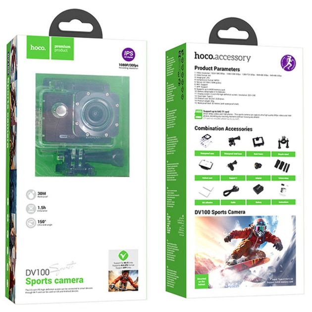 Экшн-камера HOCO DV100 – это компактное, лёгкое и многофункциональное устройство для съёмки фото и видео в самых разных условиях. Идеально подходит для занятий спортом, туризма, мото- и велопрогулок, дайвинга и других экстремальных активностей. Эта камера обеспечивает качественную съёмку в формате Full HD с широким углом обзора и поддерживает управление через Wi-Fi с мобильного устройства.