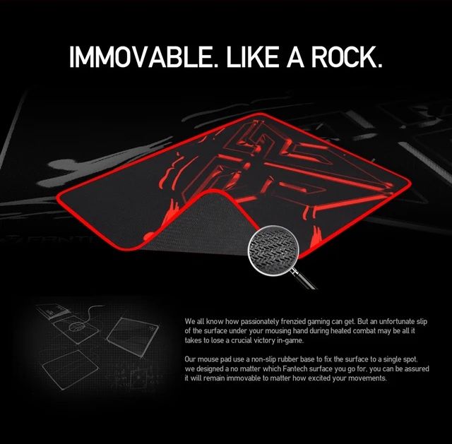 Современный дизайн с контрастным логотипом Fantech в красном цвете на черном фоне подчеркивает игровую направленность аксессуара и гармонично вписывается в любое рабочее или игровое пространство.
